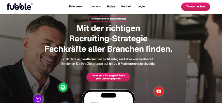 fubble GmbH je platforma koja tvrtkama olakšava pronalazak idealnih kandidata putem modernih metoda regrutacije na društvenim mrežama. S fokusom na digitalnu regrutaciju, fubble.de se oslanja na napredne tehnologije i inovativne pristupe kako bi svojim klijentima pružio najbolje moguće rezultate.